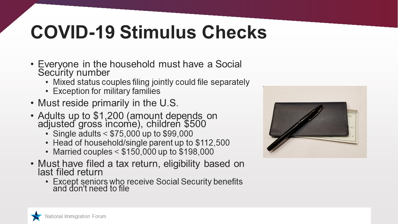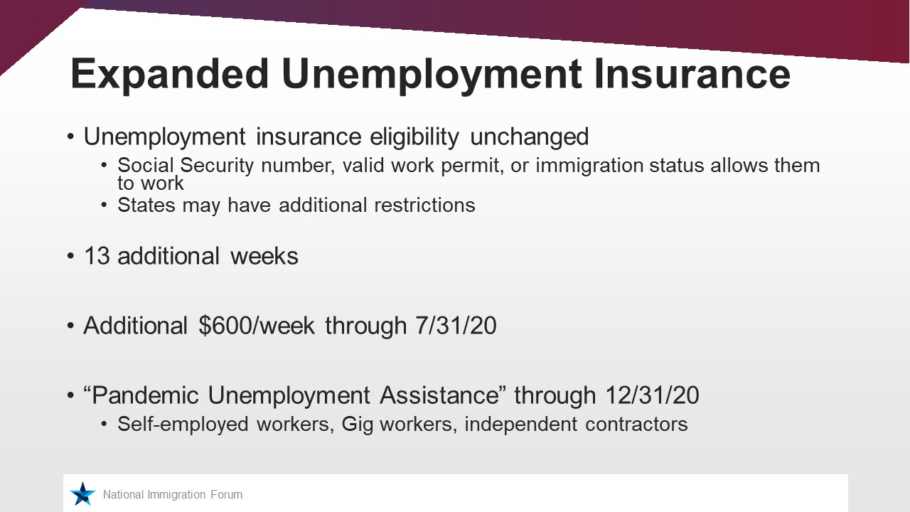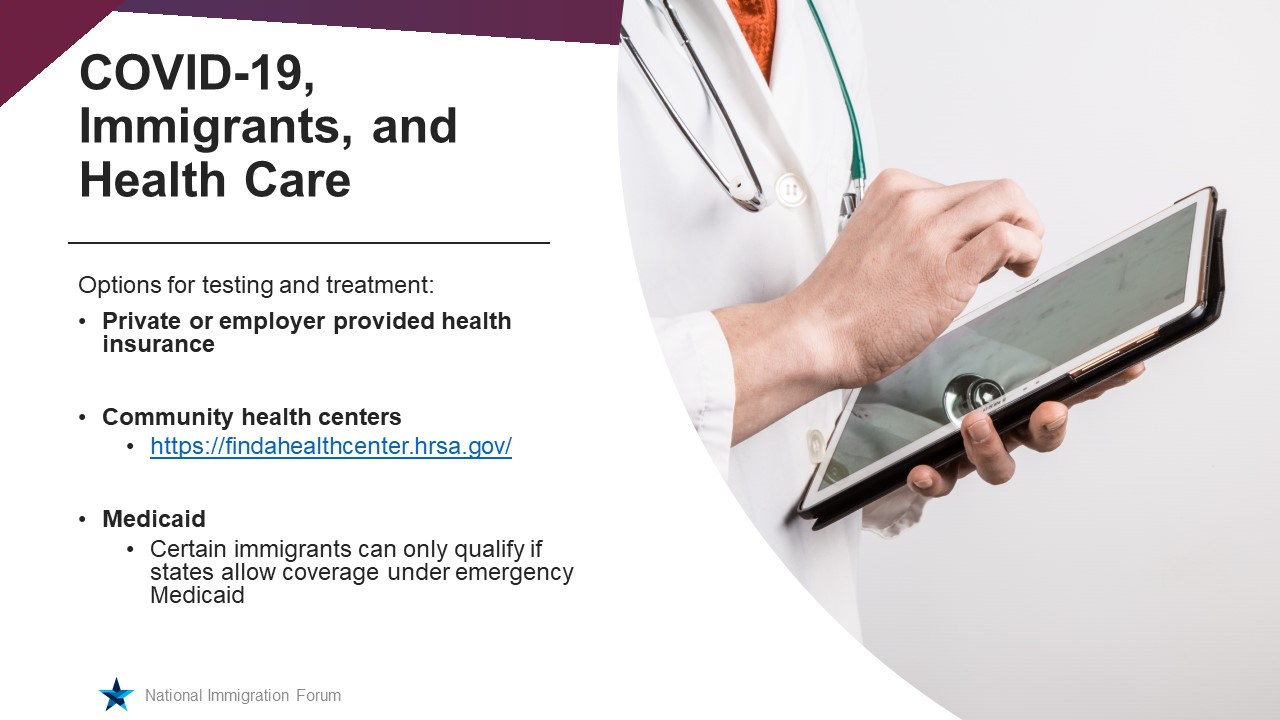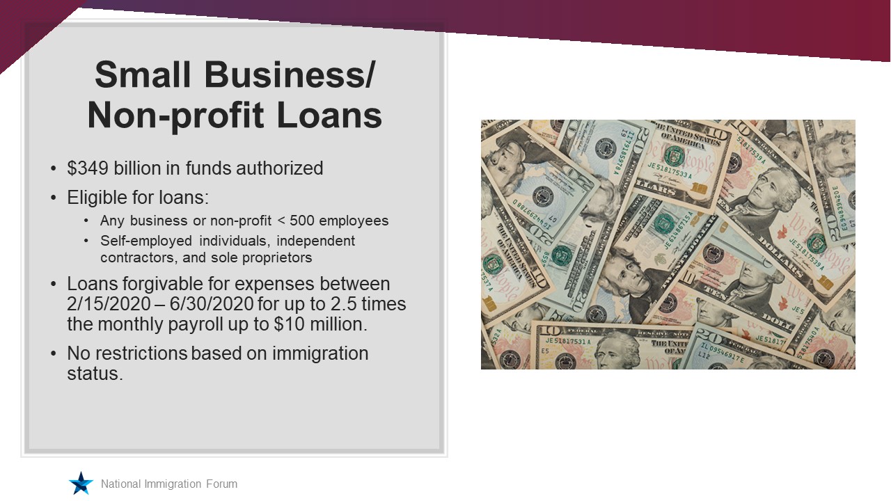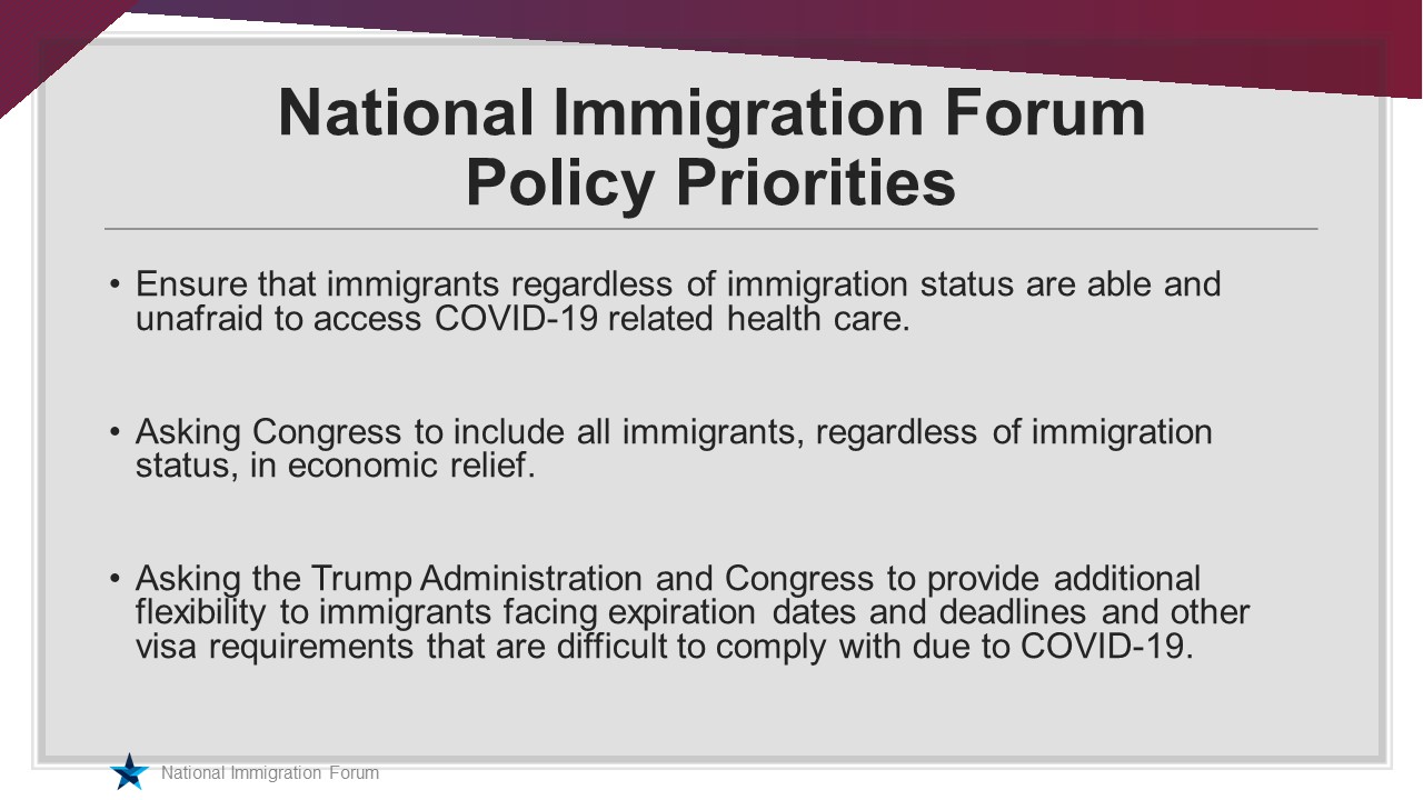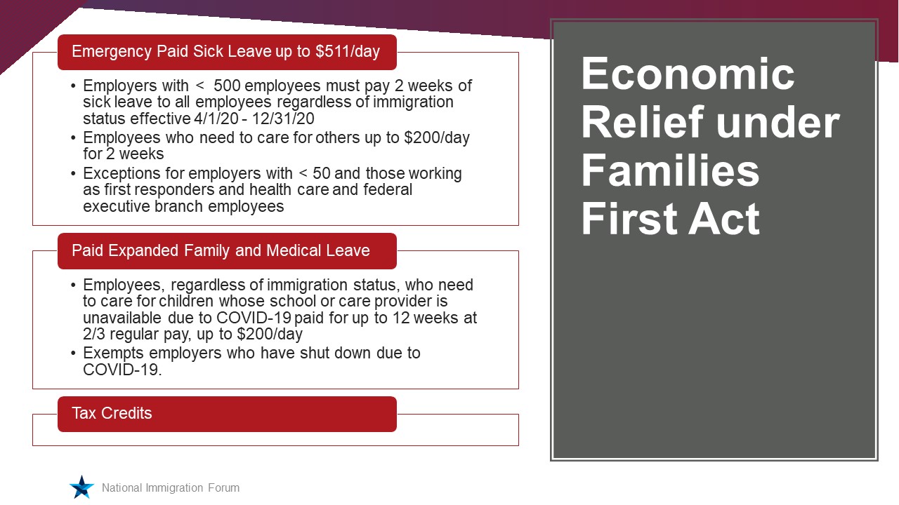 This slide presentation accompanied a webinar on April 3, 2020 about the impact of COVID-19 on immigrants that can be found here. This presentation focuses on health and economic impacts of legislation Congress passed to respond to COVID-19.